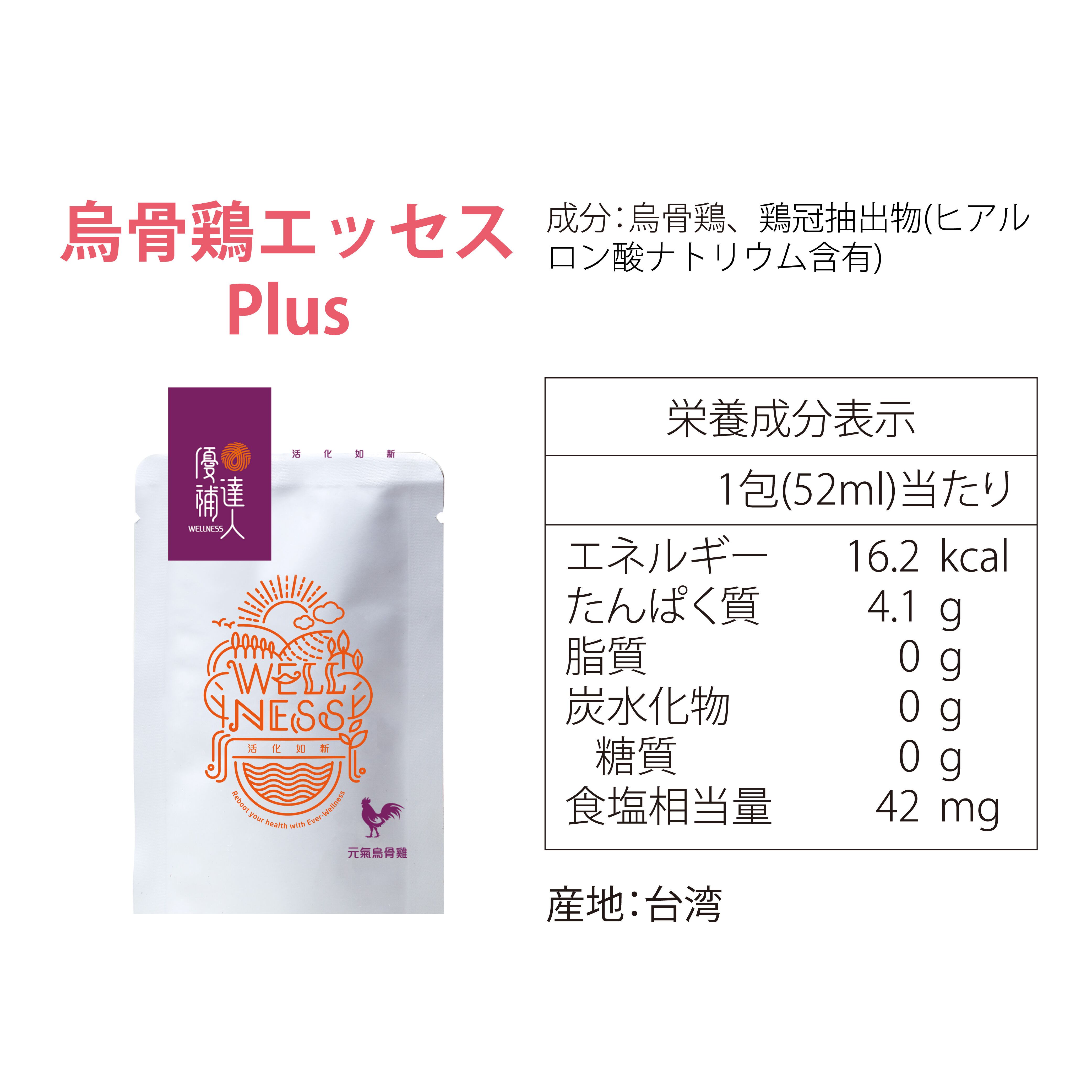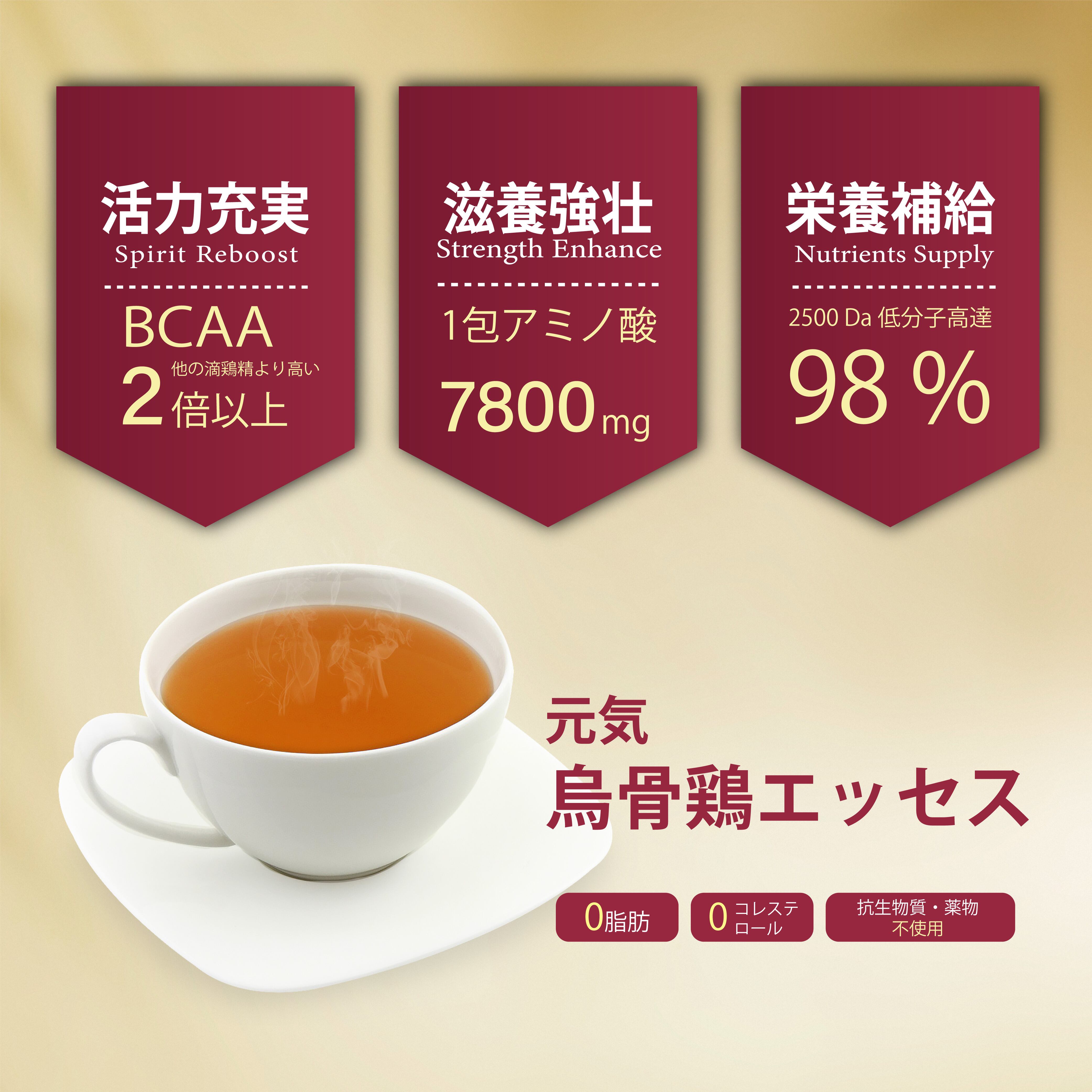 原材料名:烏骨鶏、鶏冠抽出物(ヒアルロン酸ナトリウム含有)